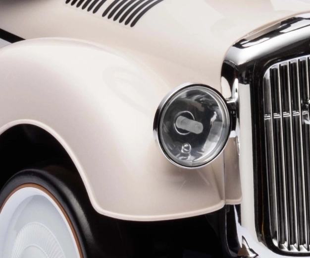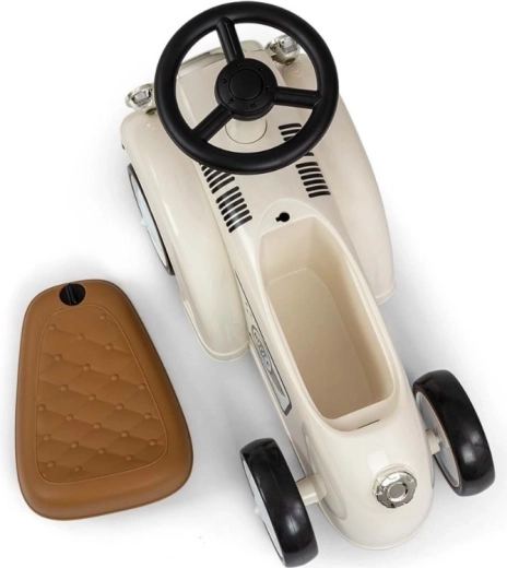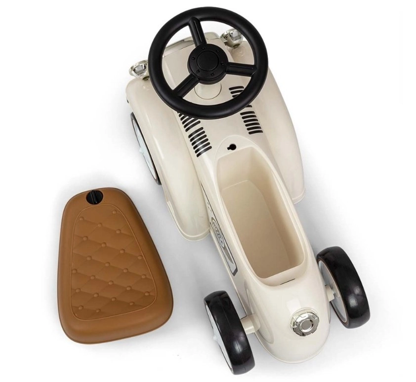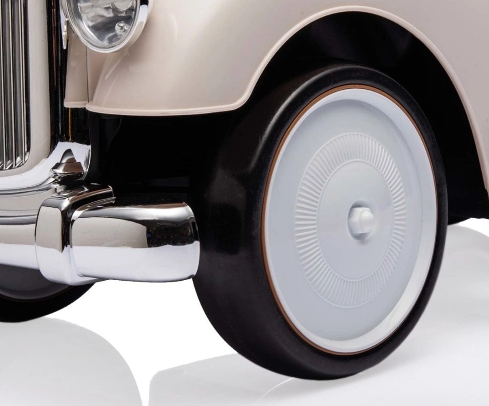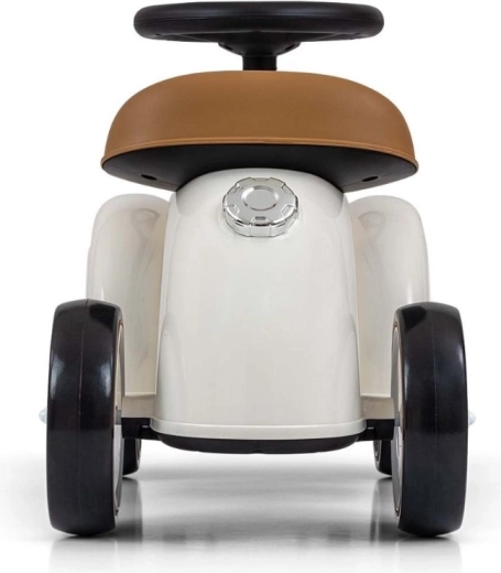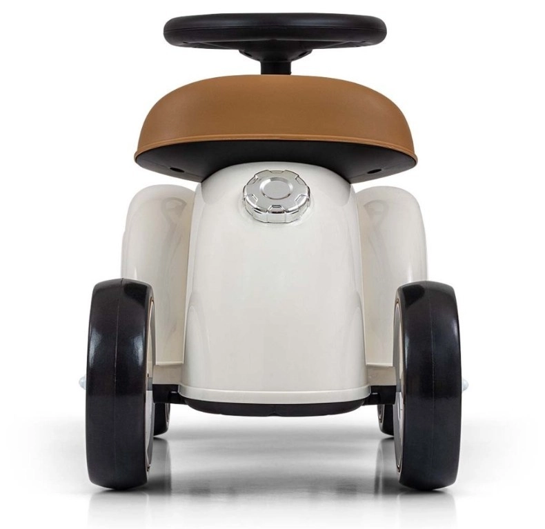 De loopfiets Royce valt op door zijn vintage uitstraling met verchroomde details en het ROYCE-embleem, wat hem een prestigieus karakter geeft. Dankzij de brede en stabiele wielen en de prettig gevormde zitting is hij ideaal als eerste voertuig voor kinderen die al zelfstandig kunnen zitten. Het draaibare stuur maakt gemakkelijk manoeuvreren mogelijk, zowel binnen als tijdens een wandeling.