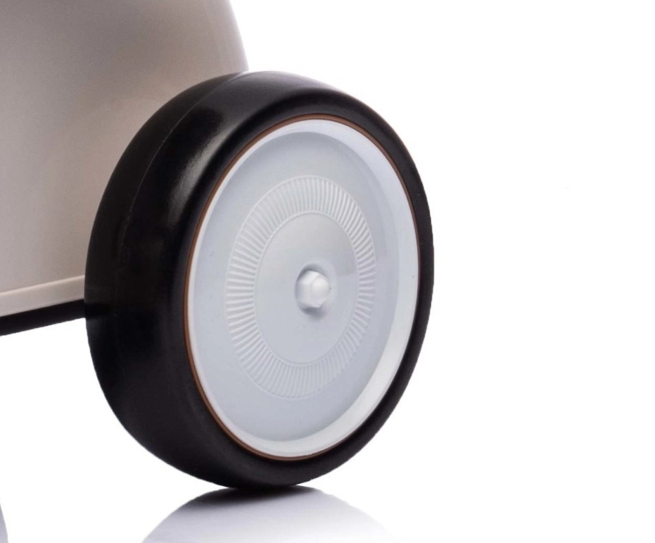 De praktische openende opbergbox onder de zitting biedt plaats aan kleine spulletjes of favoriet speelgoed. De zachte EVA-banden zijn stil, krassen de vloer niet en dempen oneffenheden goed. De lichte kunststof constructie maakt dragen eenvoudig en zorgt tegelijk voor een veilige en comfortabele rit voor je kind.