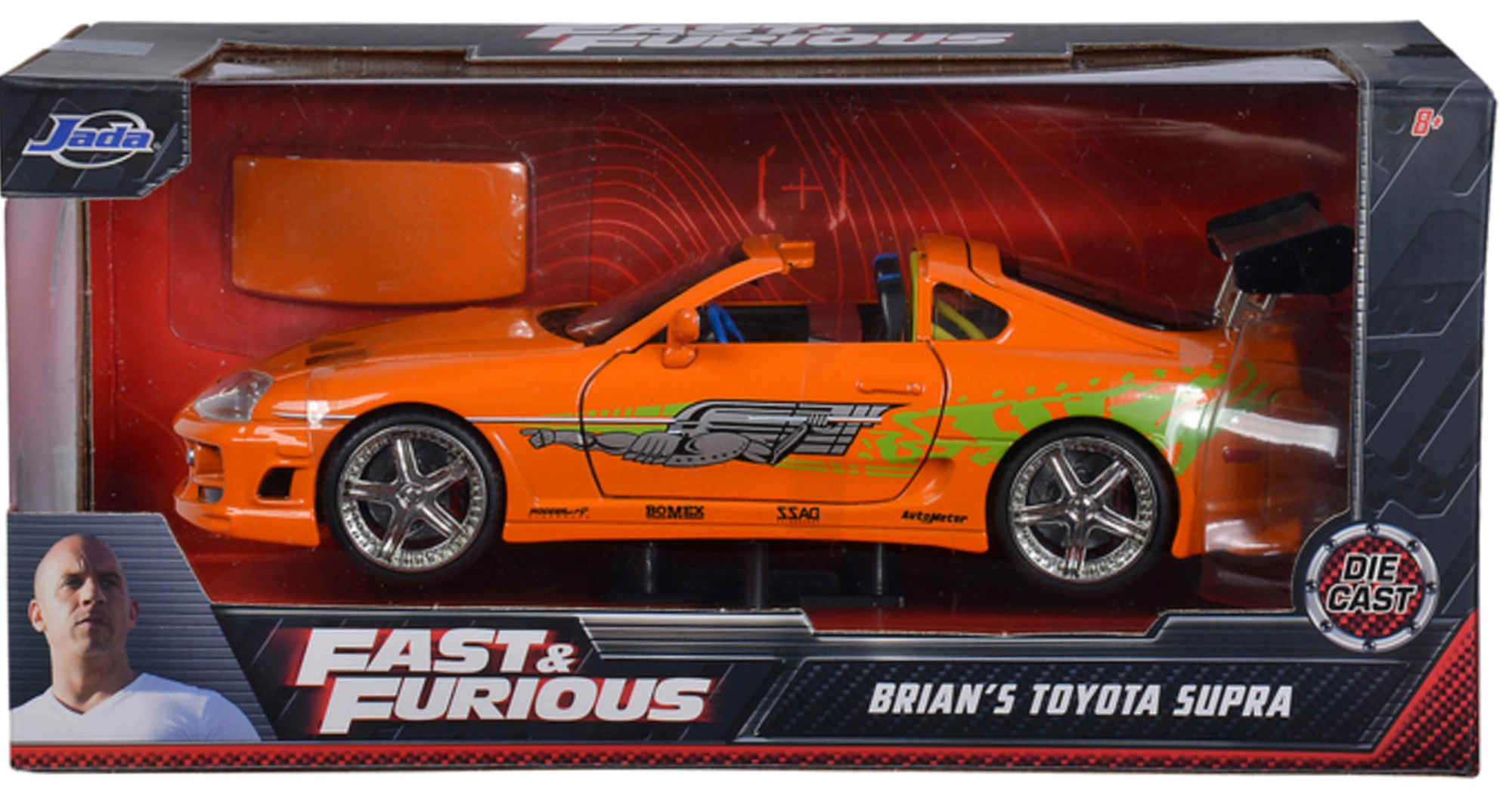 Beleef de adrenaline van de serie Fast & Furious met de nauwkeurige replica van de Toyota Supra van Jada Toys. Het model van ongeveer 19 cm biedt een metalen carrosserie, openende deuren en kofferklep en gedetailleerde afwerking in de iconische oranje kleur – perfect voor verzamelaars en liefhebbers van snelle auto’s.