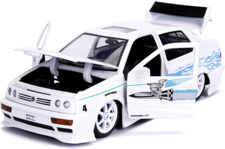 Iconisch verzamelmodel van het merk Jada Toys, geïnspireerd op de filmreeks FAST & FURIOUS. Biedt een getrouwe replica van de Volkswagen Jetta met een metalen carrosserie, openende deuren en kofferbak en verfijnde details. Ideaal voor filmliefhebbers en als stijlvolle decoratie voor in de kamer.