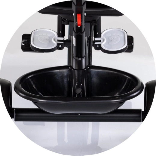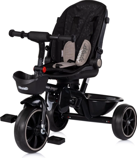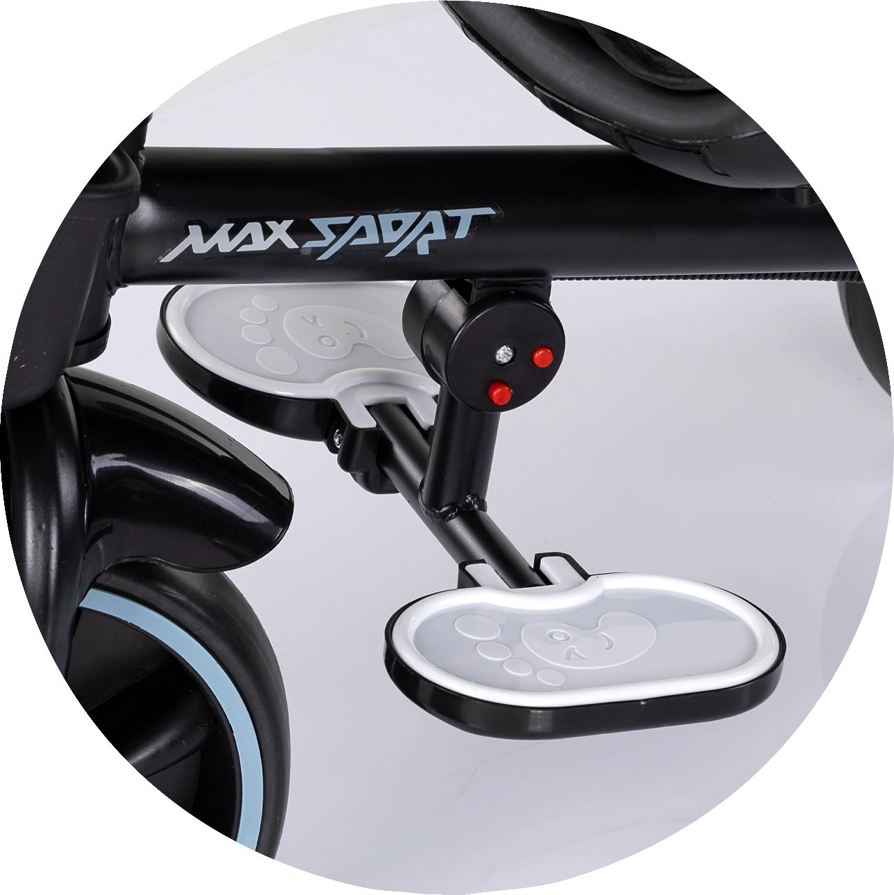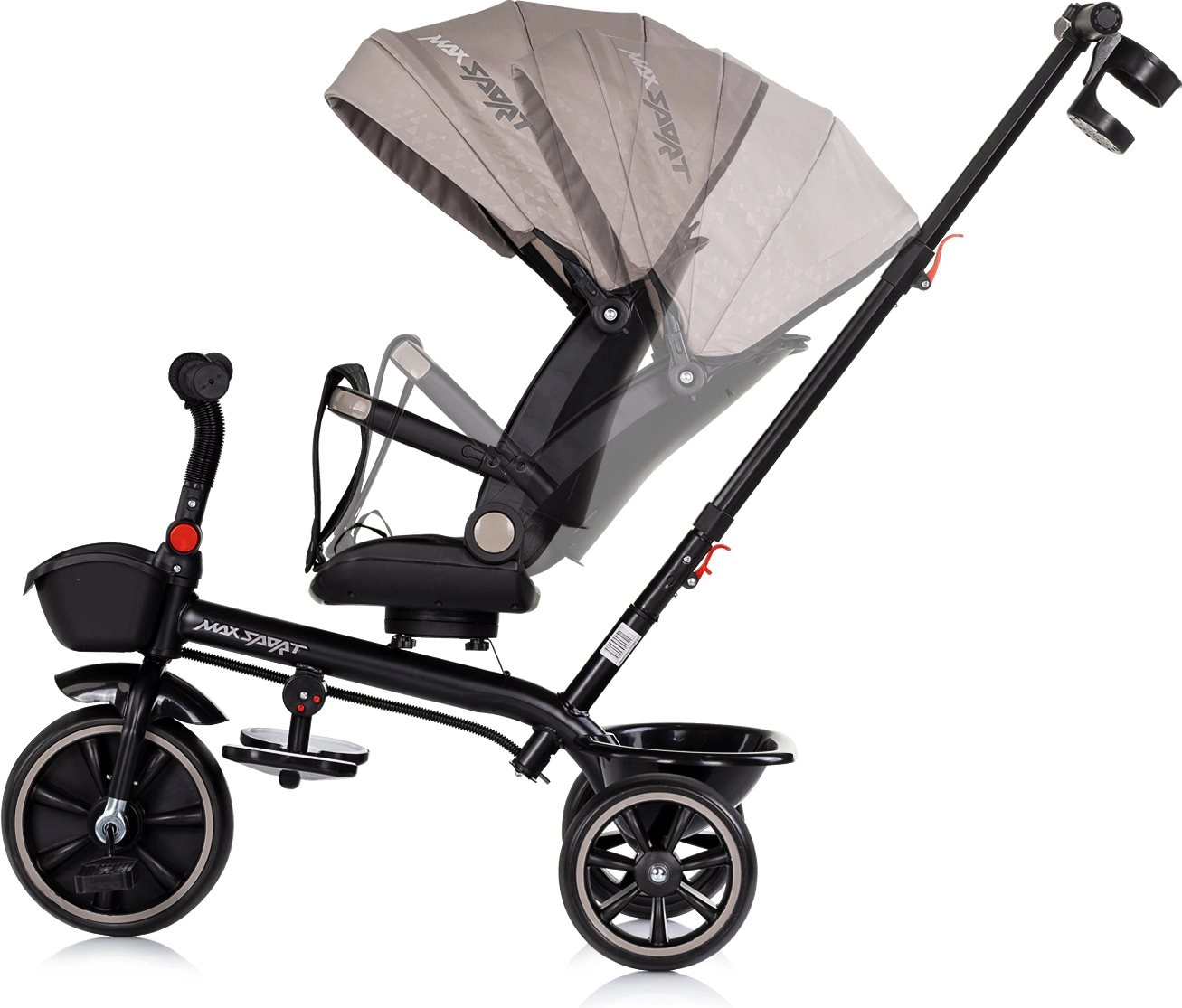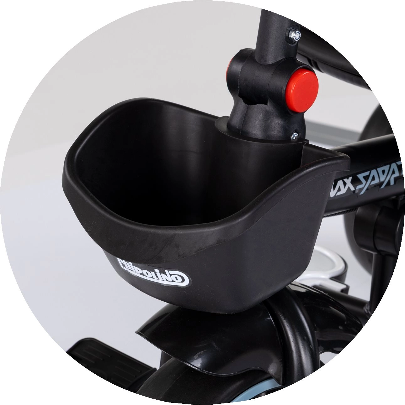 Voor maximaal comfort is de driewieler uitgerust met zachte textiele bekleding, een veiligheidsgordel, inklapbare voetsteunen en ruime mandjes voor en achter. De verstelbare ouderduwstang met twee hoogtes zorgt voor zekere geleiding en controle over de rijrichting. De inklapbare kap met zonneklep beschermt tegen de zon en de bekerhouder kan op twee posities worden bevestigd.