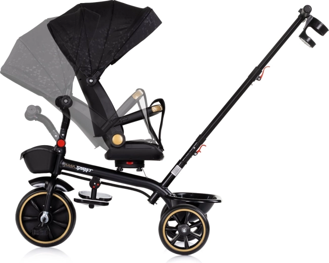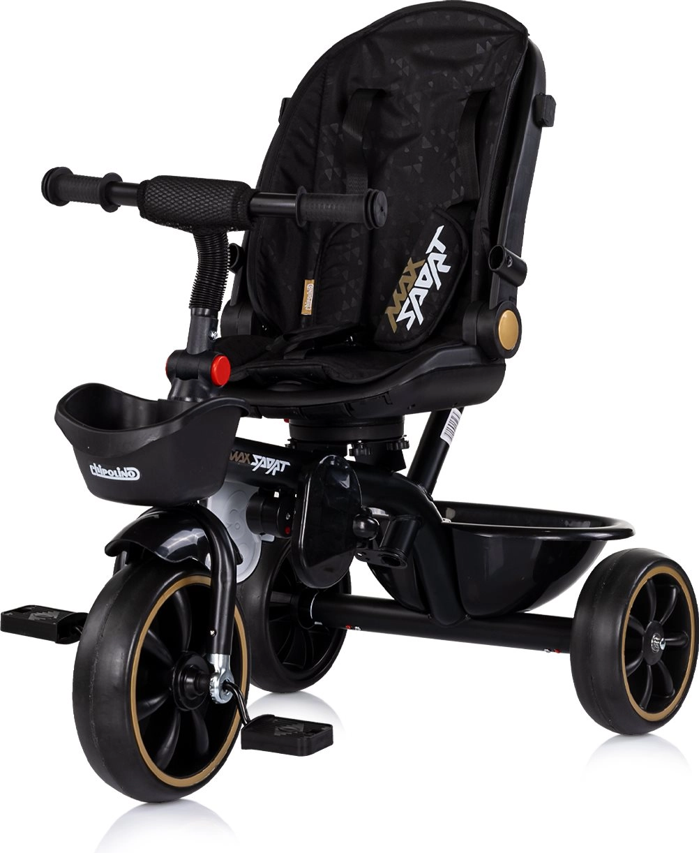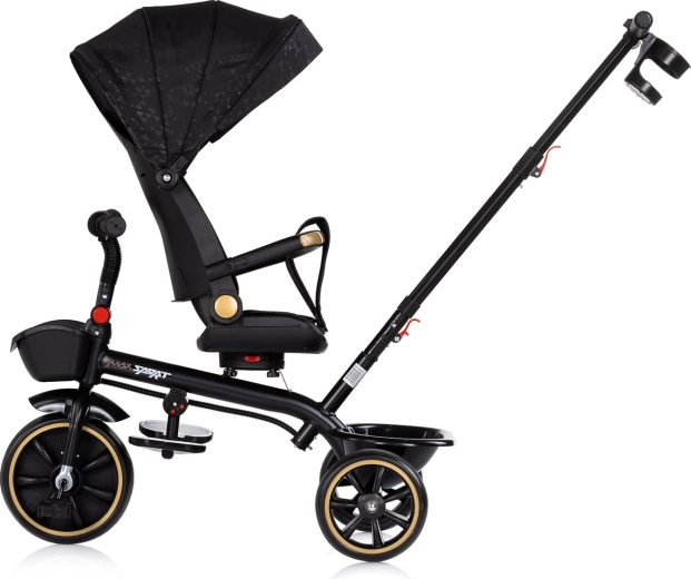De universele 2-in-1 kinderdriewieler CHIPOLINO Max Sport Noir groeit met je kind mee – van oudergeleide modus tot zelfstandig rijden. Voorzien van een 360° draaibare zitting, verstelbare positie, afneembare kap met zonneklep, veiligheidsgordel en beschermende bumper. Dankzij de verstelbare duwstang, inklappable voetsteunen en opbergmandjes voor en achter is hij ideaal voor comfortabele en veilige ritjes.