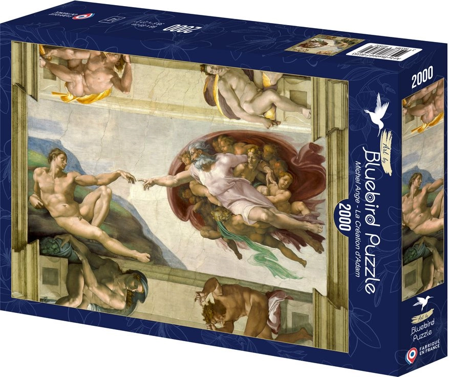 Ontdek de tijdloze schoonheid van kunst met de BLUEBIRD-puzzel “De schepping van Adam”. Met 2000 stukjes zorgt hij voor aangenaam uitdagend puzzelen en vormt hij na voltooiing een indrukwekkend beeld van circa 98 × 69 cm – perfect om in te lijsten en tentoon te stellen.