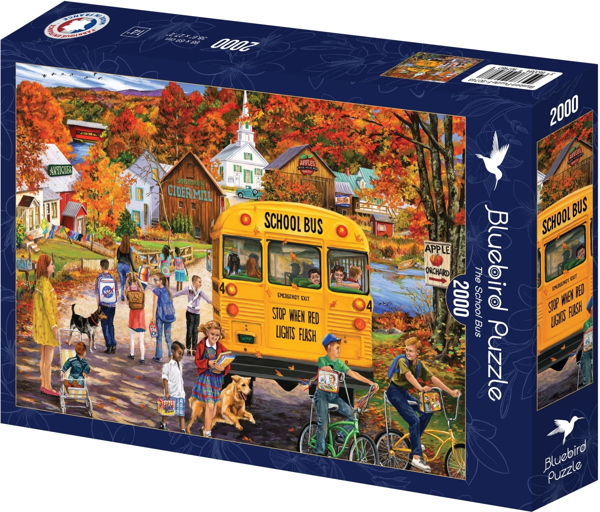 De grootschalige BLUEBIRD-puzzel met een klassiek schoolbus-scenario zal iedereen bekoren die houdt van rustig puzzelen en hoogwaardige afwerking. Na het leggen krijg je een indrukwekkend beeld van ca. 98 × 69 cm, perfect om tentoon te stellen.