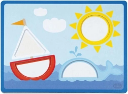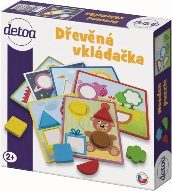 Ontdek de kwaliteitsvolle houten inlegpuzzel van DETOA, die kinderen vanaf 2 jaar leert vormen en kleuren herkennen en tegelijk hun fijne motoriek ontwikkelt. Onderdeel is 6 speelsjablonen en gekleurde houten stukjes die in de juiste openingen op het plaatje worden geplaatst. Het spel is veilig, duurzaam en voldoet aan de EU-normen voor speelgoedveiligheid.
