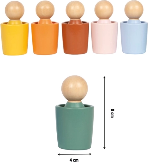 Ontdek kleuren en fijne motoriek met de Montessori-set van small foot: 6 gekleurde bekertjes en 6 bijpassende houten figuurtjes van 100% FSC®-gecertificeerd hout. Geweldig voor sorteren, stapelen en vrij spel, ter ondersteuning van oog-handcoördinatie, concentratie en cognitieve ontwikkeling vanaf 12 maanden.