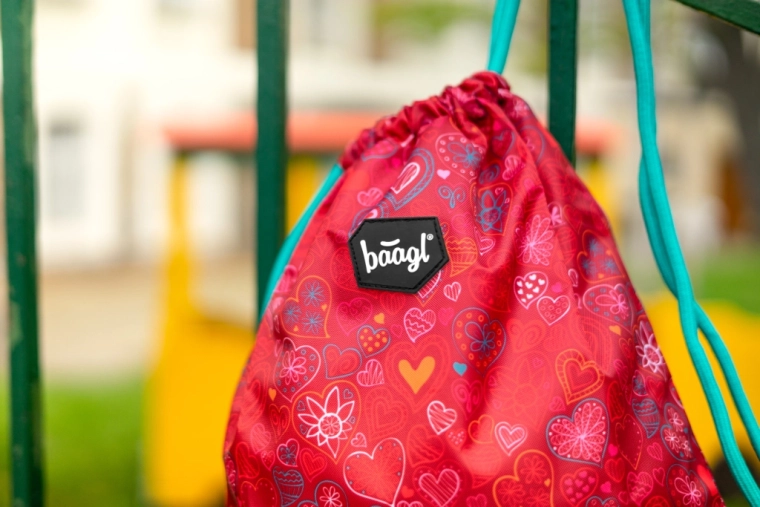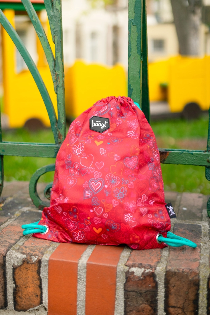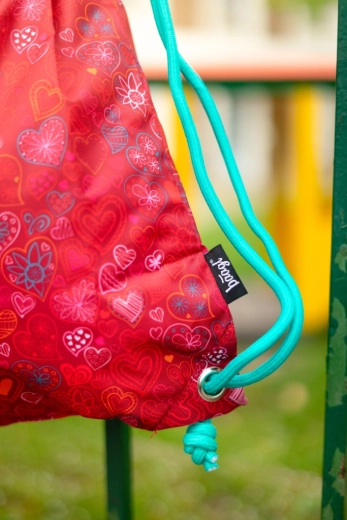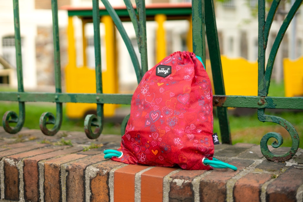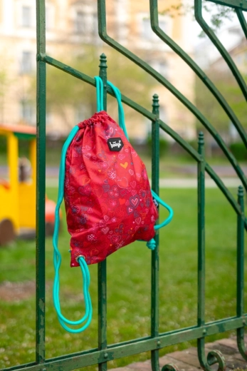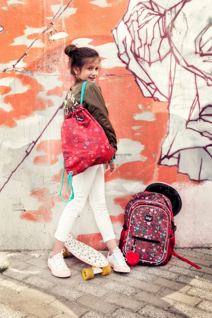 De opvallende rode kleur en het hartjesmotief zijn perfect voor liefhebbers van een speelse stijl en passen bij de schooluitrusting.