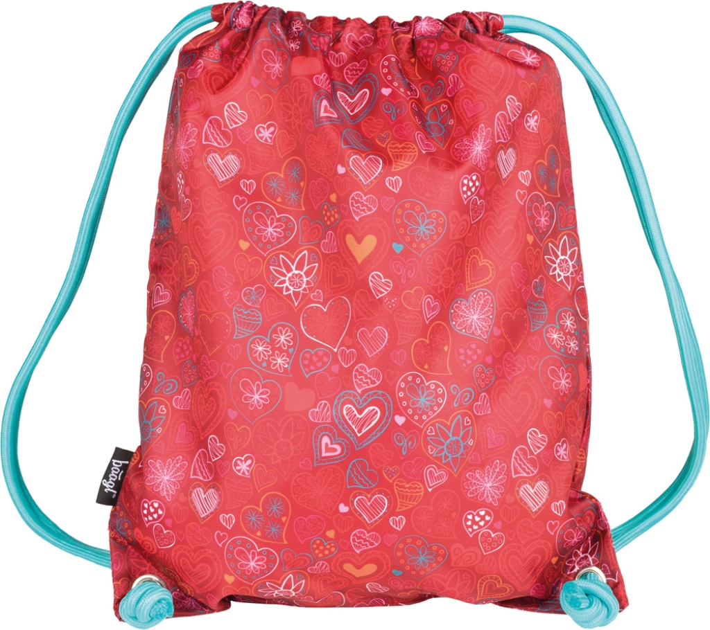 Lichte en duurzame gymtas met een romantisch hartjesmotief in het rood. Dankzij de stevige trekkoorden trek je hem makkelijk dicht en draag je hem comfortabel op de rug als een rugzak. Gemaakt van sterk, afwasbaar materiaal, ideaal voor gymspullen, binnenschoenen en kleine schoolspullen of clubs.