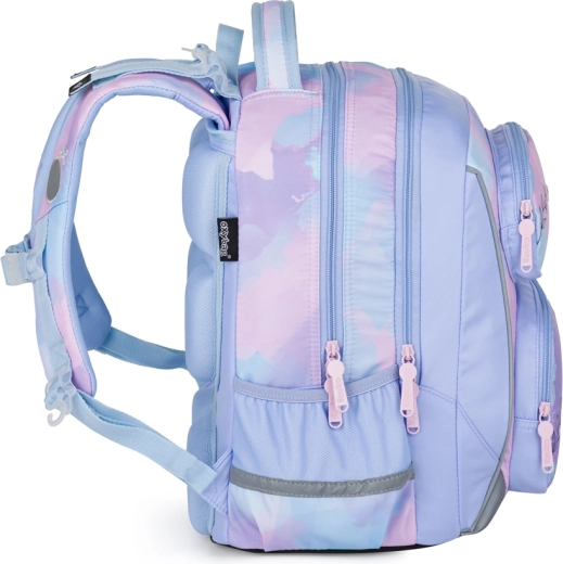 De voordelige 3-delige set OXY JUMPER Kolibrie combineert comfort, organisatie en veiligheid. De rugzak met verbeterd ergonomisch rugpaneel en geveerde schouderbanden maakt het dagelijkse dragen van boeken en benodigdheden makkelijker. De praktische indeling met twee compartimenten, een voorvak voor de lunch en zijvakken van mesh houdt de hele schooldag orde.