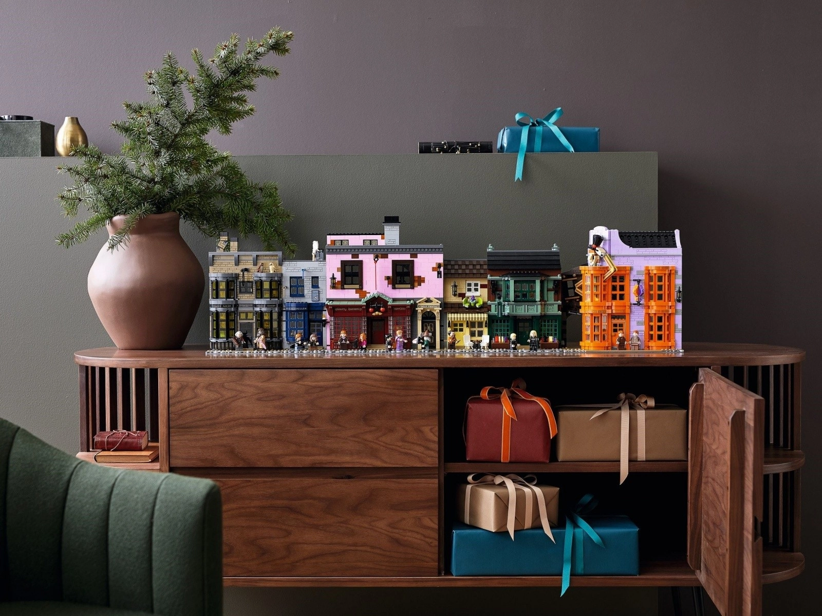 Dankzij de modulaire constructie kun je de secties herschikken, uitbreiden en je eigen straat creëren. De set is ideaal voor verzamelaars, om in het interieur tentoon te stellen en voor urenlang fantasierijk spel. Ook aanwezig: de legendarische toegang tot de redactie van de Ochtendprofeet en handbediende elementen, zoals de beroemde bewegende hoed boven de ingang van de Weasley-grapwinkel.