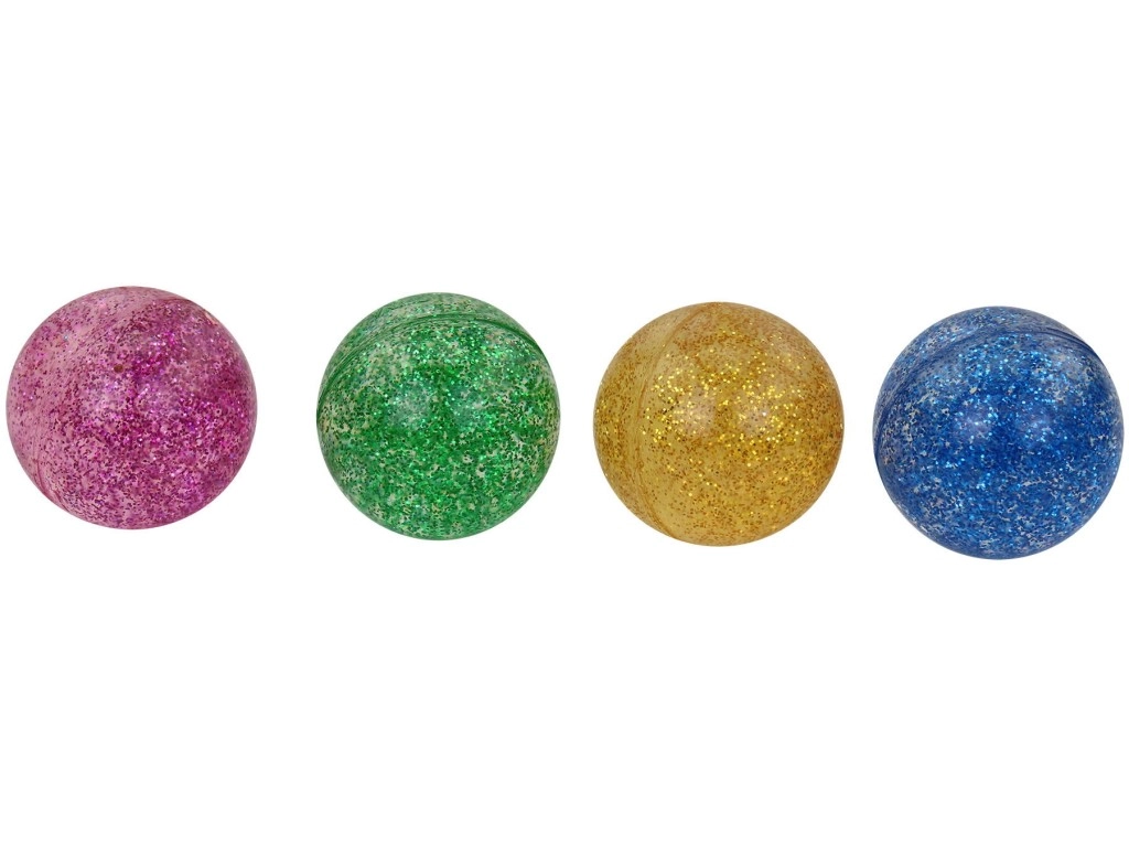 Leuk en veilig speelgoed voor kinderen vanaf 3 jaar – een glitterende stuiterbal met een diameter van 45 mm, gemaakt van duurzaam rubber. Stuitert geweldig, glanst prachtig en stimuleert actief spel, zowel binnen als buiten.
