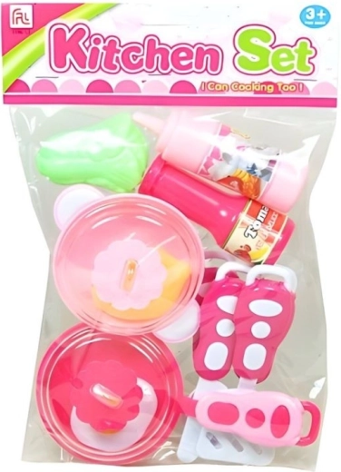 De inhoud omvat doorgaans bekers met deksel, keukengerei (bijv. lepels, opscheplepels) en speelvoedsel, waarmee realistische keukenscènes kunnen worden gecreëerd. Dankzij de veilige afwerking is de set geschikt voor dagelijks spel.