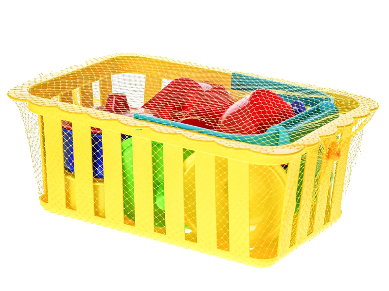 De set bevat een praktische mand waarin kinderen alle onderdelen makkelijk kunnen opbergen. De mand is ook geschikt voor het vervoeren van de hele set, op bezoek of naar de tuin. De levendige kleuren ondersteunen de kleurwaarneming en maken spelen extra leuk.