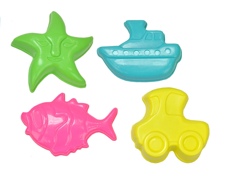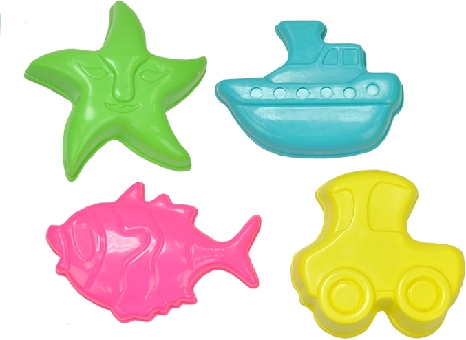 Deze set van vier stevige plastic vormpjes is een uitstekende keuze voor dagelijks spelen in de zandbak en aan zee. Dankzij de verschillende vormen en kleuren maken kinderen originele creaties en ontwikkelen zij op een natuurlijke manier hun creativiteit en coördinatie. De lichte constructie en de compacte verpakking in een netzak maken hanteren en opbergen eenvoudig.