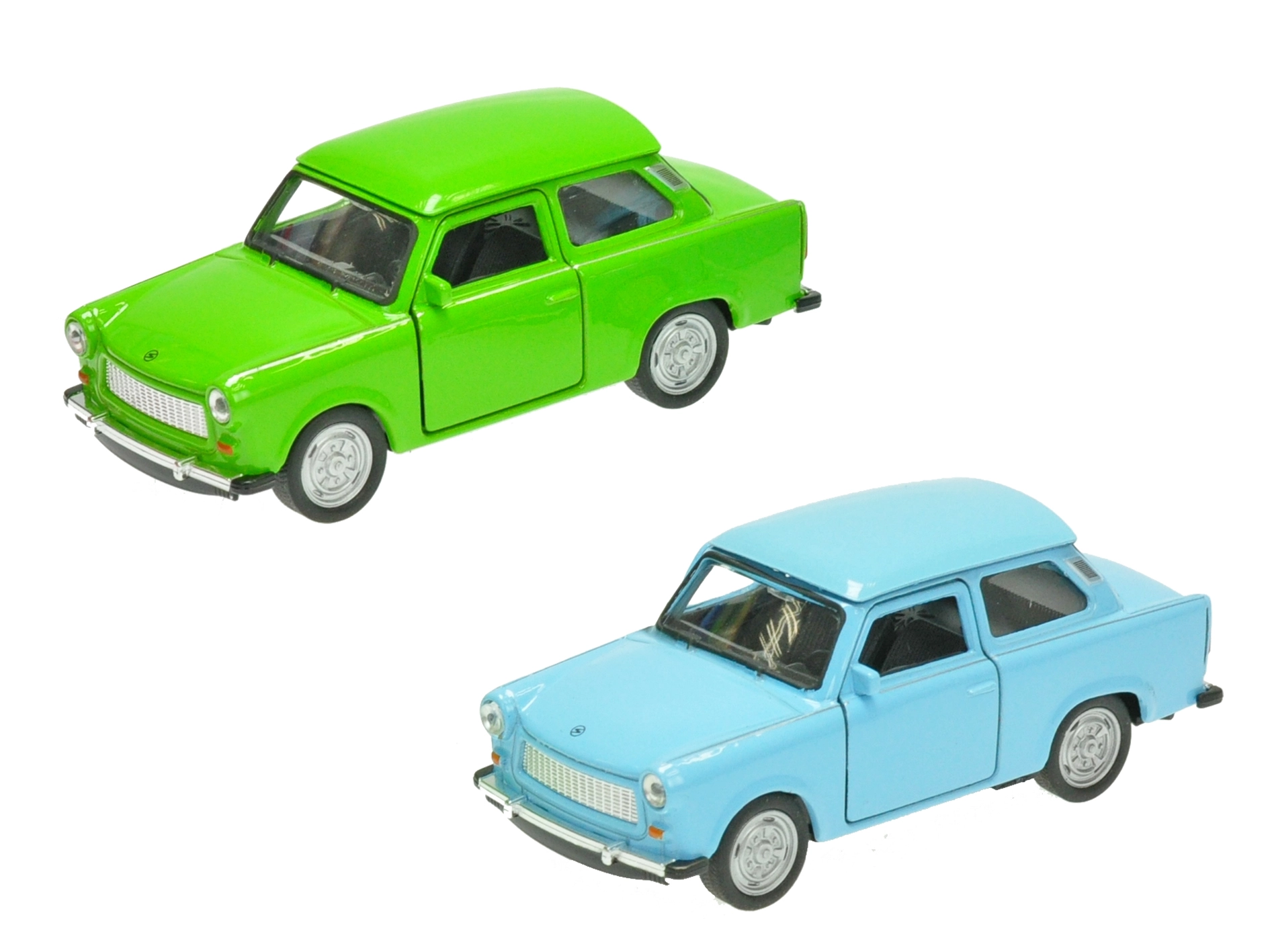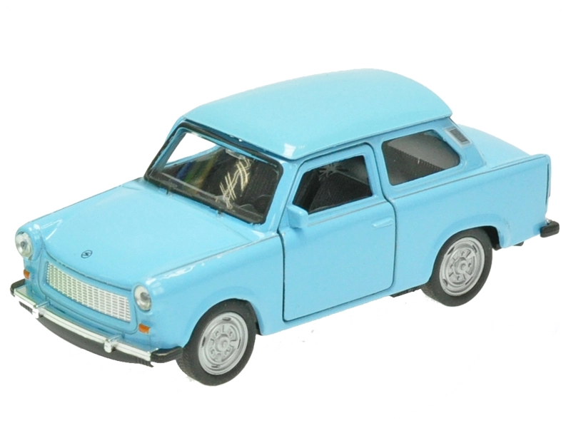 Gedetailleerd metalen model van de legendarische TRABANT 601 van het merk Welly in schaal 1:36 – ideaal voor kinderen en verzamelaars. Voorzien van te openen deuren, een terugtrekmechanisme (pull-back) voor speels rijplezier en een duurzame constructie van metaal en kunststof. De lengte van het model is 11 cm en het is verkrijgbaar in de kleuren blauw, groen en wit. Geschikt vanaf 3 jaar.