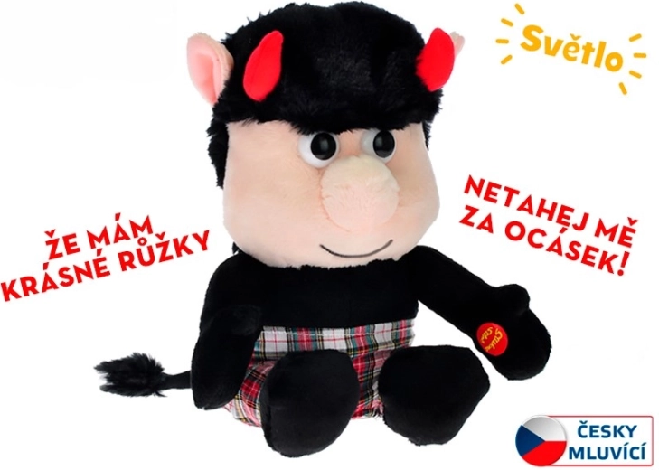 Verwelkom in de kinderkamer een vrolijke metgezel – het duiveltje genaamd Rudla. Deze zachte pluchen knuffel spreekt Tsjechisch wanneer je op zijn handje drukt en zijn hoorntjes knipperen daarbij speels. Dankzij het compacte formaat van 20 cm is hij perfect om thuis mee te spelen en om mee te nemen onderweg.