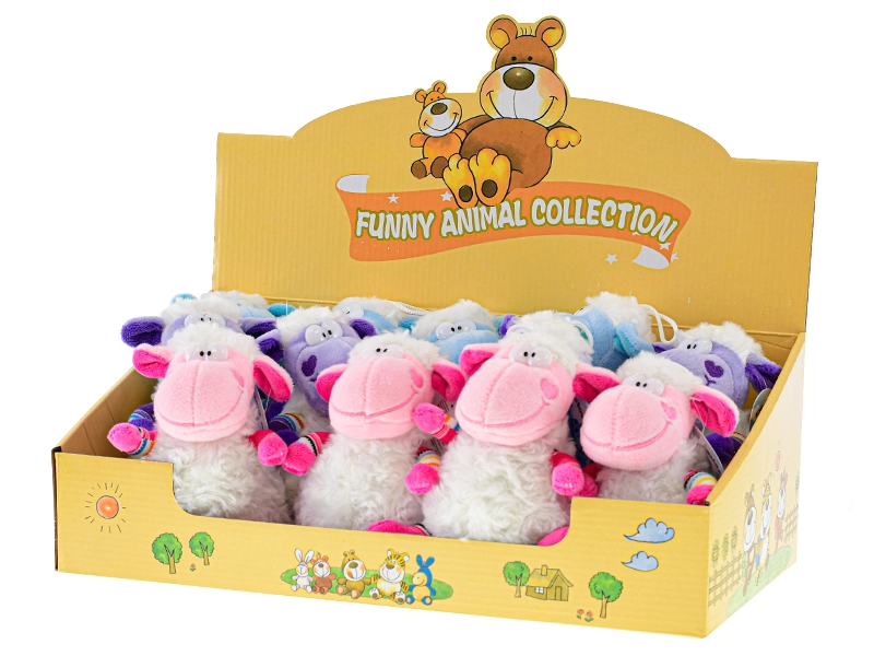 Een schattig pluchen schaapje van 14 cm hoog dat kinderen al vanaf de geboorte zal verblijden. Het is gemaakt van hoogwaardige, zachte pluche, heeft een zittende uitvoering en gestreepte pootjes in drie kleurvarianten.