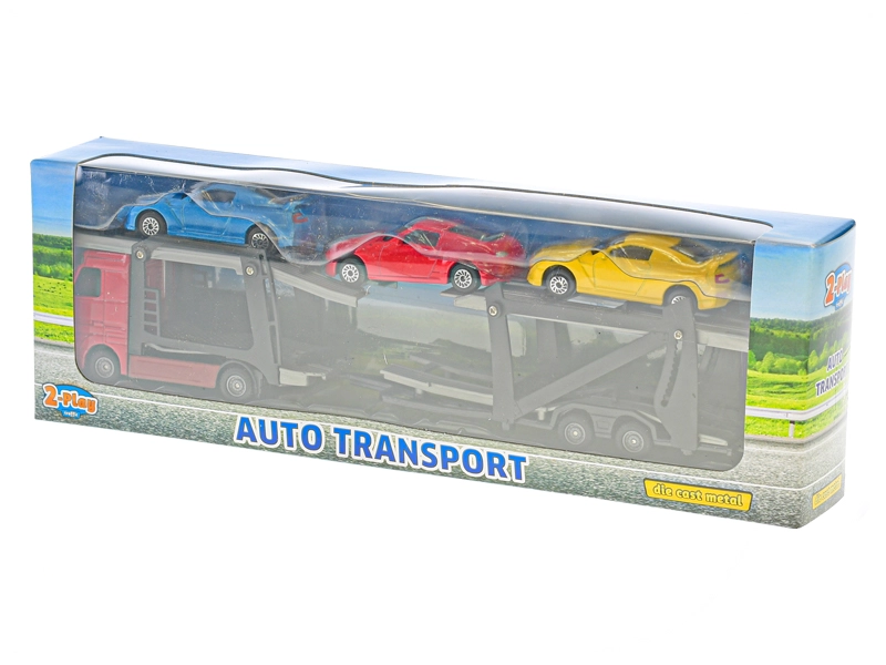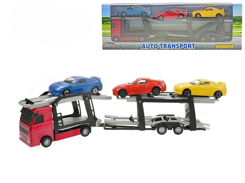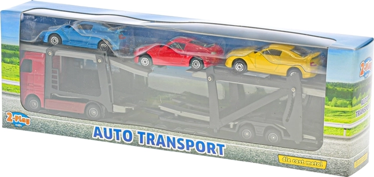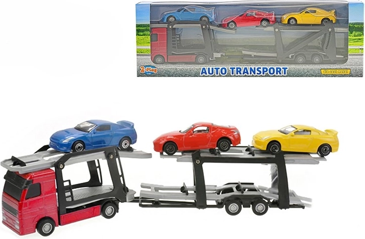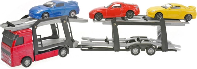 Geef kinderen uren speelplezier met deze metalen autotransporter in schaal 1:60. Hij heeft een afneembare aanhanger, een uitschuifbare oprijplaat voor eenvoudig laden en in de verpakking zitten 3 kleine auto’s. Ideaal voor alle kleine chauffeurs vanaf 3 jaar.