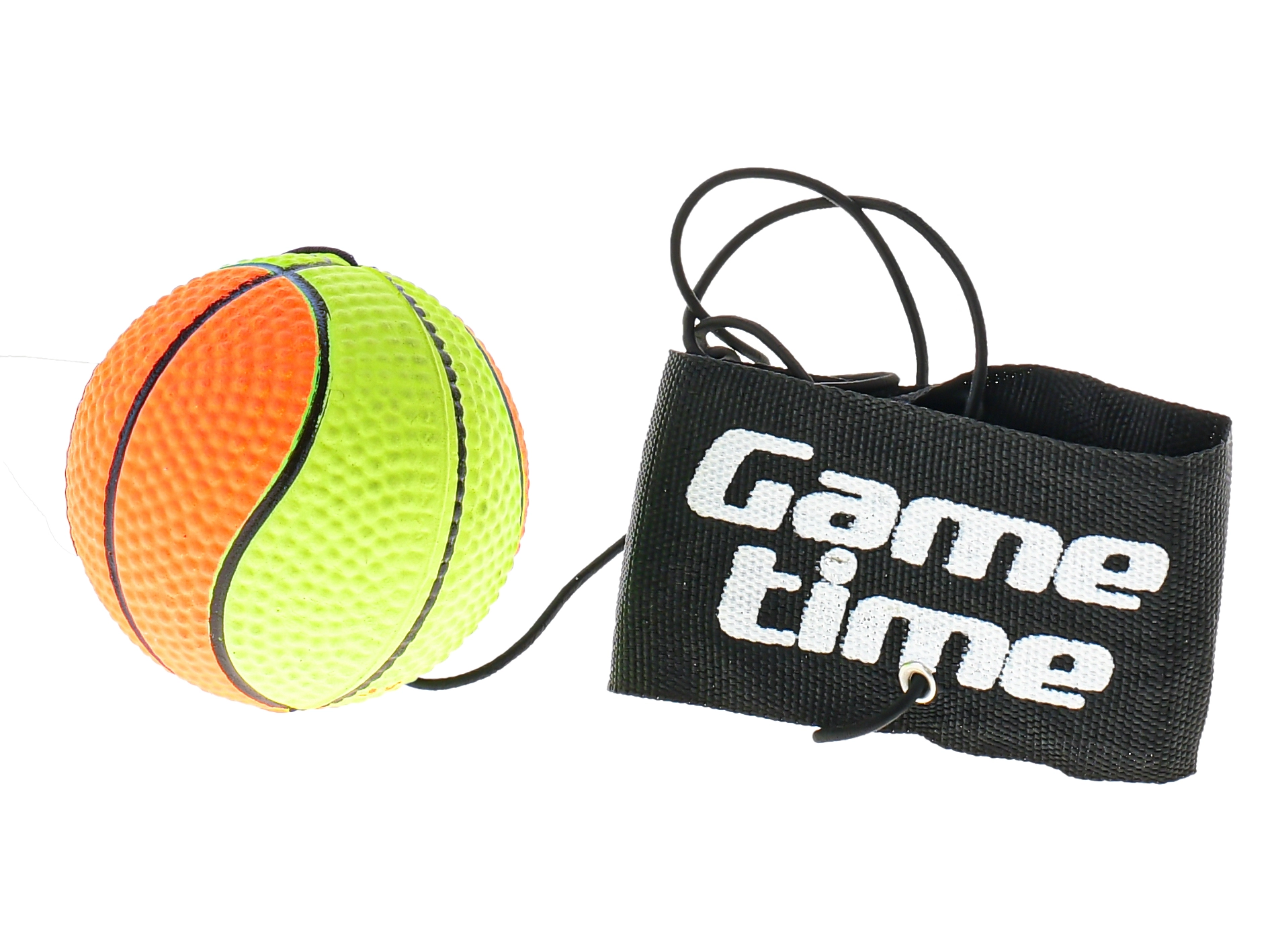 De leuke en praktische Gametime-trainingsbal met een diameter van 6 cm is bevestigd aan een elastische rubberen koord met een comfortabele klittenbandband. Ontwikkelt uitstekend de coördinatie, reflexen en reactievermogen. Dankzij het getextureerde oppervlak ligt hij goed in de hand en glijdt hij niet weg, het elastische koord maakt eindeloos herhalen van slagen mogelijk zonder de bal kwijt te raken en de verstelbare band bevestig je eenvoudig aan hand of voet.