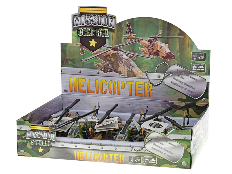 Ontdek een wereld vol actie met de Mission Control-helikopter, die elke jonge liefhebber van militaire techniek zal verrassen. De metalen uitvoering zorgt voor extra duurzaamheid en een lange levensduur, terwijl de licht- en geluidsfuncties realistische speelmomenten bieden. Dankzij de pull-back functie rijdt de helikopter eenvoudig vooruit na het naar achteren trekken, wat kinderen veel plezier geeft zonder ingewikkelde bediening.