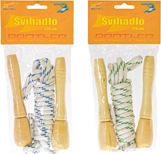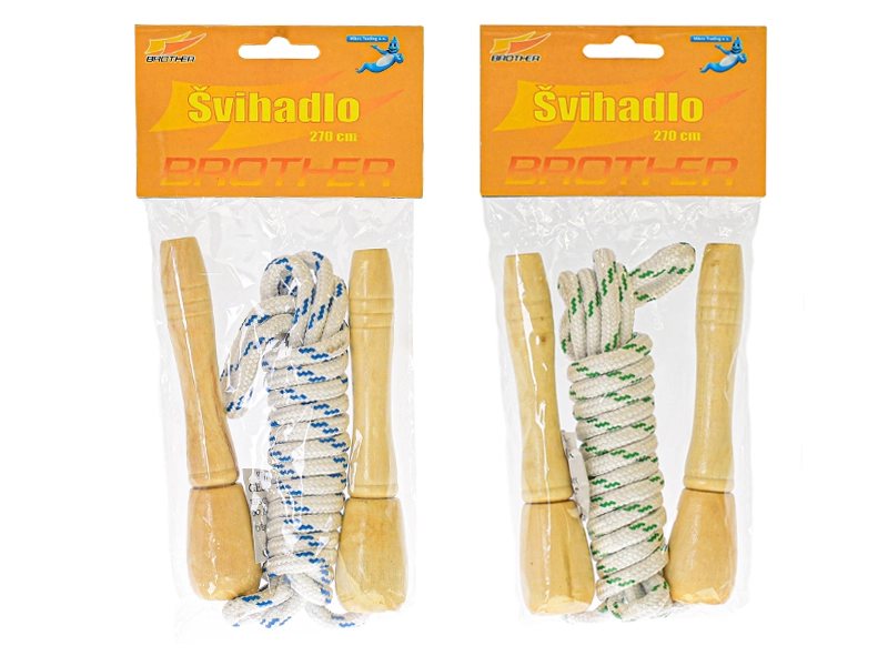 Leuk en duurzaam kinderspringtouw van 270 cm met comfortabele houten handgrepen. Ideaal voor actieve beweging, het ontwikkelen van coördinatie en spelen buiten en binnen. Een geweldige keuze voor individueel springen en plezier met vrienden, verkrijgbaar in 2 kleuropties.