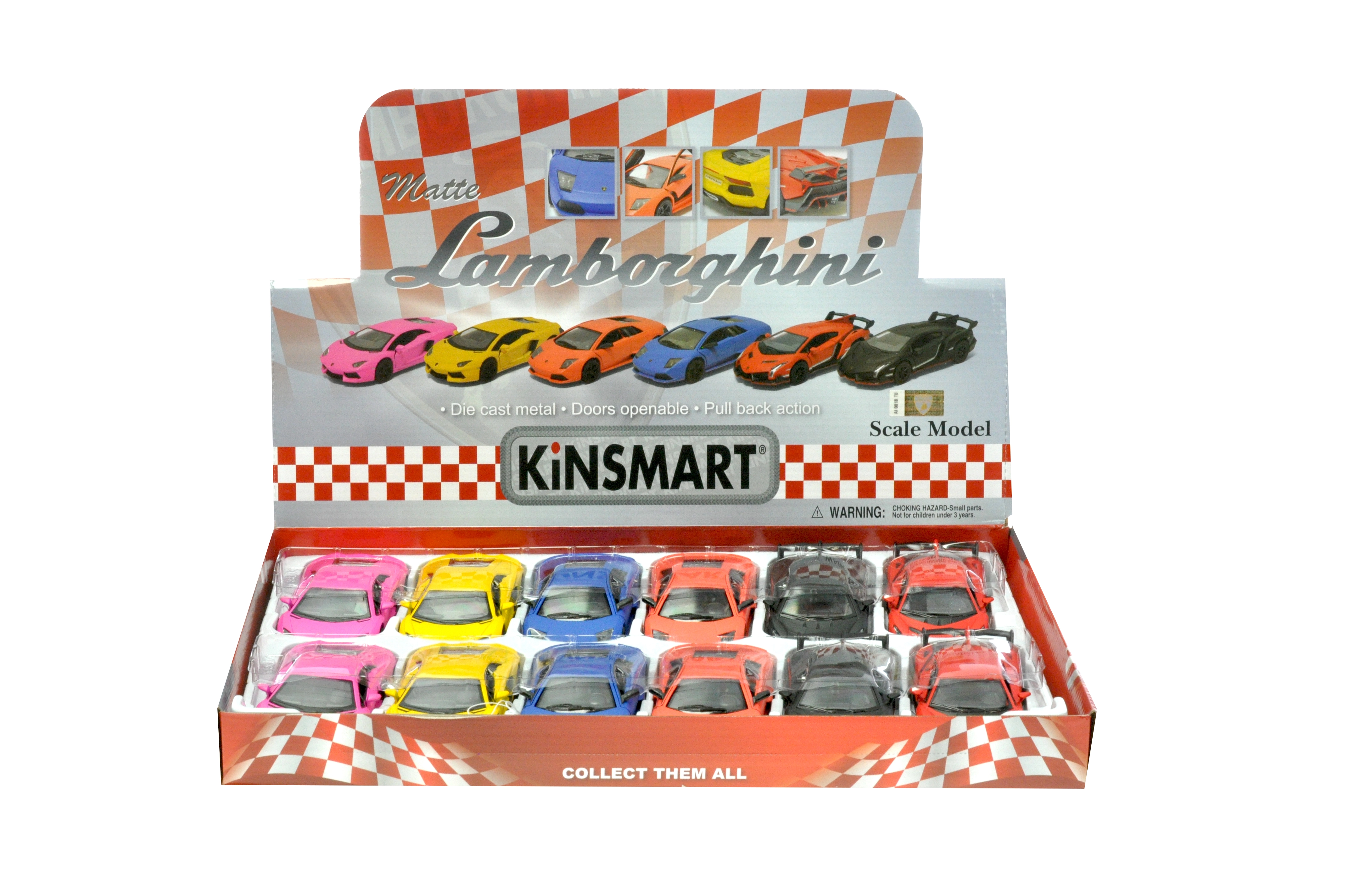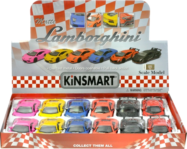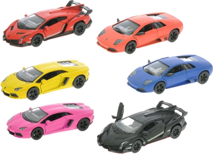 Ontdek het fraai afgewerkte sportwagenmodel Kinsmart LAMBORGHINI op schaal 1:36, dat zowel kinderen als verzamelaars zal bekoren. Metalen uitvoering met matte lak, pull-back aandrijving voor vlotte ritjes na het opwinden en openslaande deuren voor een authentieke speelbeleving. Ideaal formaat om mee te spelen en om tentoon te stellen, verkrijgbaar in de varianten AVENTADOR, VENENO en MURCIÉLAGO.