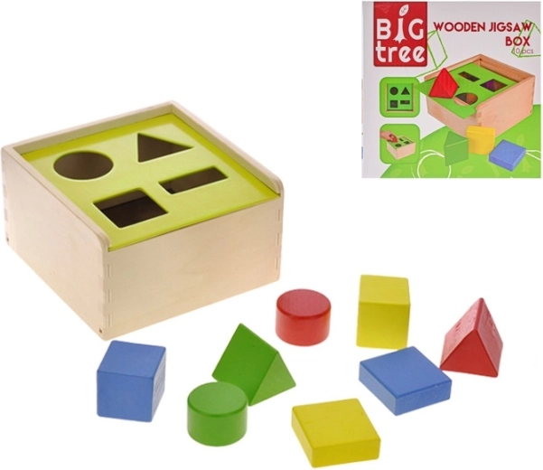 De houten vormendoos Big Tree is een ideale speelgoedset voor kinderen vanaf 12 maanden, die de fijne motoriek, logisch denken en oog-handcoördinatie stimuleert. Gekleurde blokken in verschillende vormen worden in de bijpassende openingen gestoken en na afloop haal je ze eruit door het deksel opzij te schuiven, wat het kind op een natuurlijke manier aanzet tot creatief ontdekken en geduld.