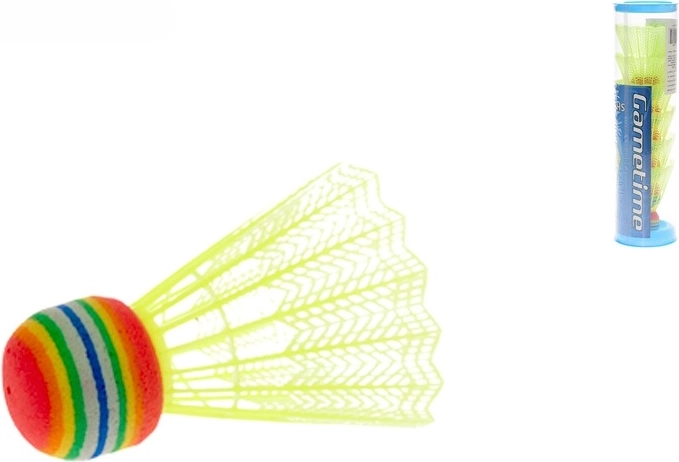 Praktische set van 6 gele badmintonshuttles GAMETIME in een stevige koker voor veilige opslag. Veren uitvoering zorgt voor een stabiele vlucht en een prettig speelgevoel. Ideaal voor recreatief spel en plezier met het gezin, geschikt voor kinderen vanaf 3 jaar.