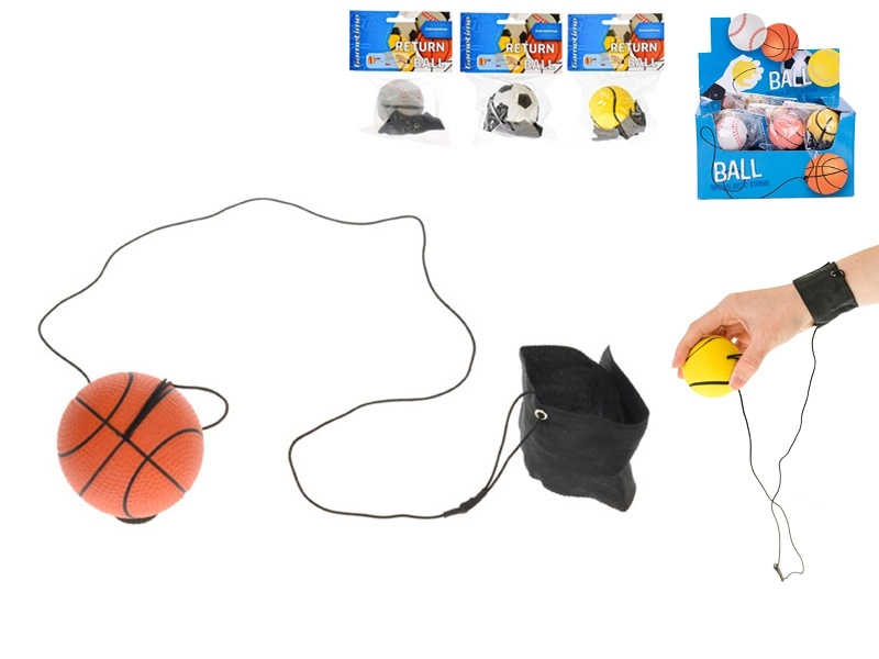 Leuk speelgoed voor kinderen en volwassenen: GAMETIME terugkerende bal met een diameter van 60 mm, bevestigd aan een elastisch koord met een polsband, zodat hij na elke worp terugkomt. Geweldig voor het trainen van coördinatie, reflexen en veilig solo spelen zonder de bal kwijt te raken. Verkrijgbaar in tennis, voetbal, basketbal en honkbal. Geschikt vanaf 6 jaar.