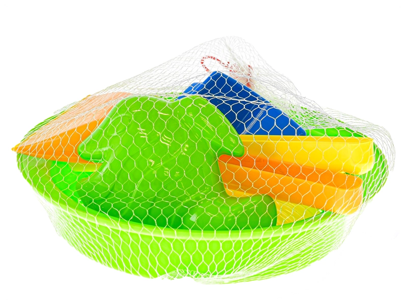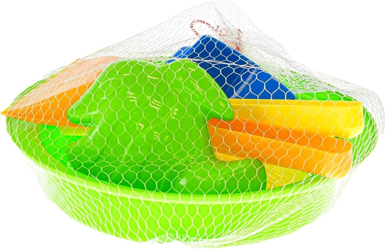 Deze kleurrijke kinderset voor in het zand stimuleert creativiteit en fijne motoriek. Dankzij hoogwaardig, licht plastic en gladde, afgeronde randen is het spel veilig en comfortabel, zelfs voor de kleinste handjes. In het praktische netje neem je de set gemakkelijk mee naar de speeltuin of het strand.