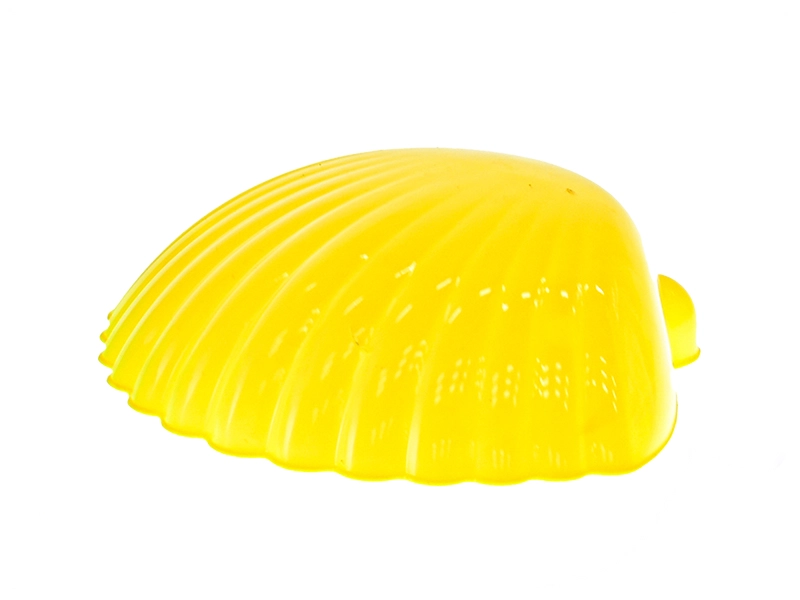 Het stevige plastic vormpje maakt mooie schelpvormen in het zand – ideaal voor de eerste zandcreaties.
