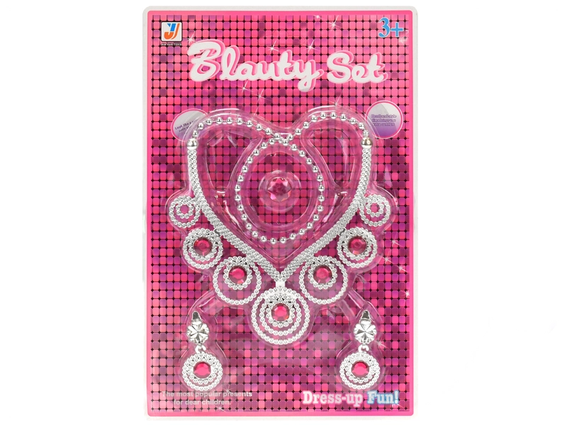 Betover een kleine dame met een stijlvolle sieradenset voor kinderen. De set bevat een hartvormige ketting, oorbellen en een ring op een overzichtelijk kaartje – ideaal voor kleine prinsesjes die willen stralen op elk feestje of bal.