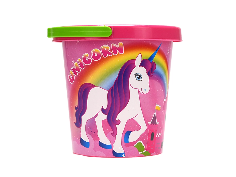 Deze kleurrijke emmer met betoverend eenhoornmotief wordt de favoriete helper bij spel in de zandbak, in de tuin en bij het water. Dankzij de grootte van 14 cm kunnen kinderen hem gemakkelijk vastpakken en dragen, of ze nu schelpen verzamelen, moddertaartjes maken of een zandkasteel bouwen.
