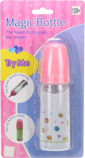 Dit poppenflesje biedt kinderen een authentieke beleving van de verzorging van een baby. Bij kantelen “verdwijnt” de inhoud realistisch, waardoor het lijkt alsof de pop echt drinkt. Wanneer je de fles weer rechtop zet, verschijnt de vloeistof opnieuw – zonder rommel en zonder bij te vullen.