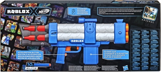 Duik in de wereld van Roblox met de Nerf Roblox Arsenal: Pulse Laser blaster! Deze blaster is geïnspireerd op de Roblox-game Arsenal en laat je dankzij de meegeleverde code een speciaal virtueel item verkrijgen.