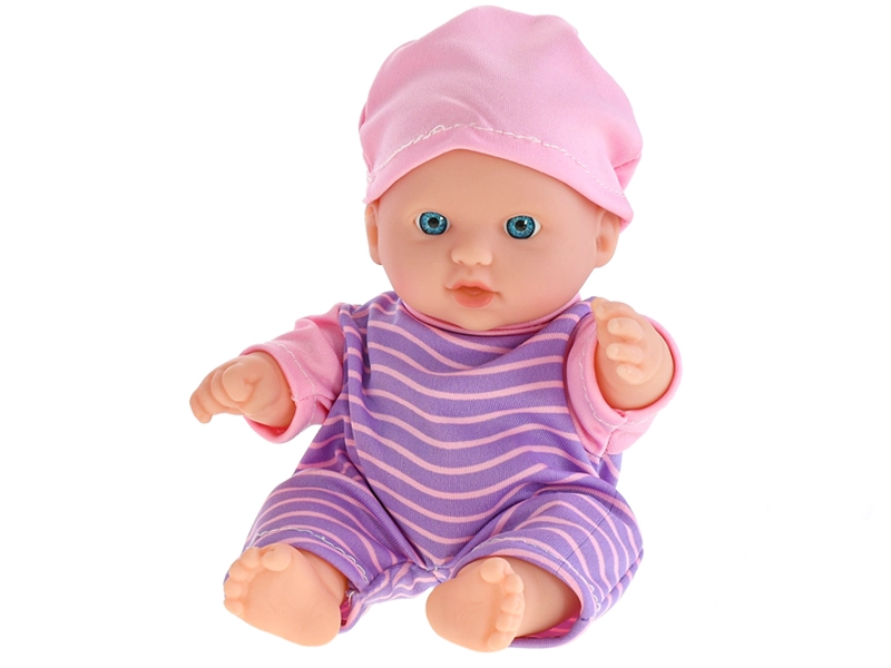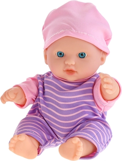 Een schattige zittende pop van 20 cm is de ideale metgezel voor kinderen vanaf 18 maanden. Ze heeft een stevig kunststof lichaam voor hoge duurzaamheid en eenvoudig onderhoud. Dankzij de compacte afmetingen kunnen kinderen haar overal mee naartoe nemen. Er zijn drie pyjamavarianten om uit te kiezen – gestreept, wit en roze.