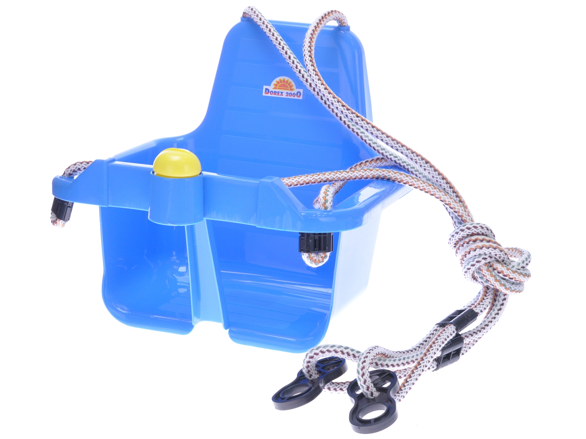 Ontworpen voor comfort en gebruiksgemak – de stevige voorbeugel helpt het kind in een veilige positie te houden en de ergonomische vorm van het zitje ondersteunt een correcte zithouding tijdens het schommelen.