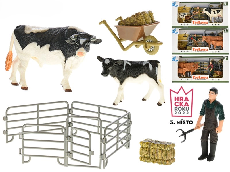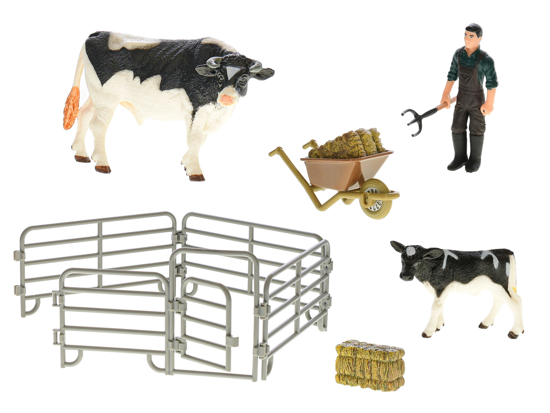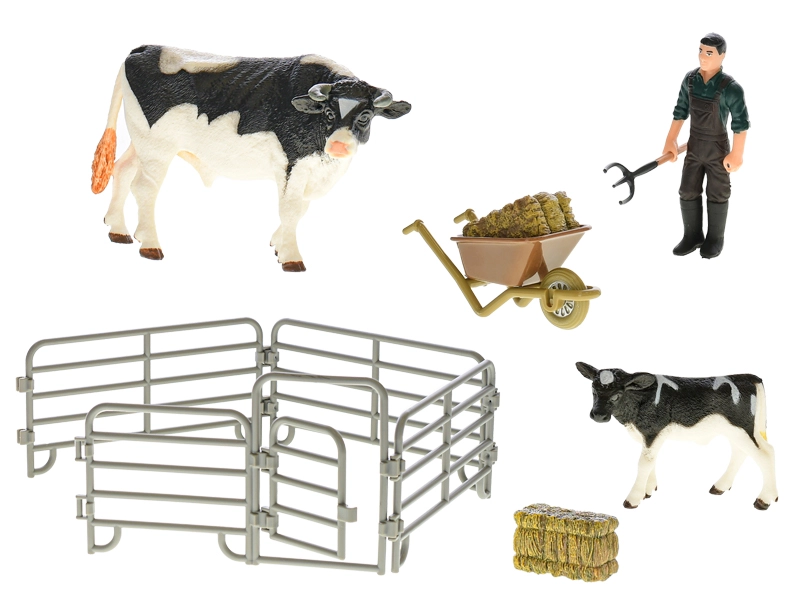 Met deze realistische set bouwen kinderen vanaf 3 jaar gemakkelijk hun eigen omheining, voeren ze de dieren en proberen ze het werk op de boerderij uit. In de doos vind je figuren van een koe en een kalf en ook praktische gereedschappen (bijv. vork, bosmaaier of bezem) die het spel verrijken met extra scenario’s.