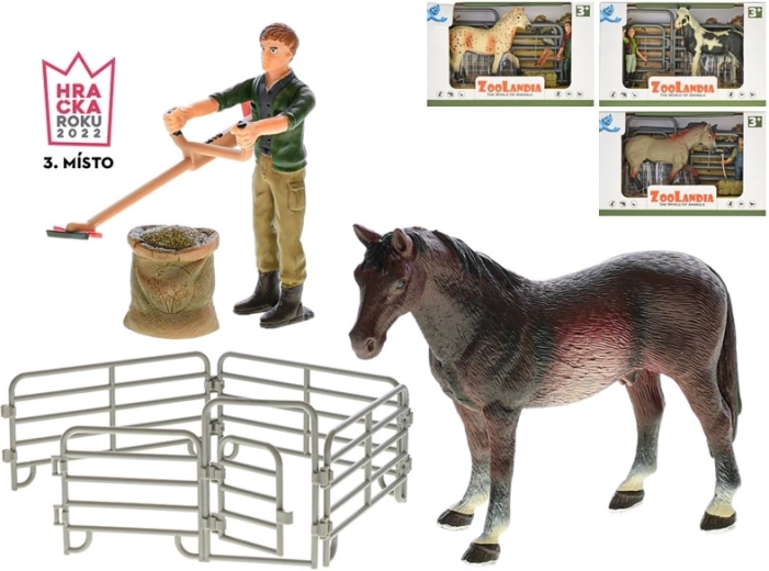 Ontdek de magie van de paardenwereld met de set Zoolandia paard met accessoires. Een realistische kunststof paardenfiguur met thematische stalaccessoires stimuleert de fantasie en fijne motoriek van kinderen. Verkrijgbaar in 4 verschillende varianten (gevlekt, donkerbruin, grijs, schimmel). Ideale speelgoedset voor kinderen vanaf 3 jaar.