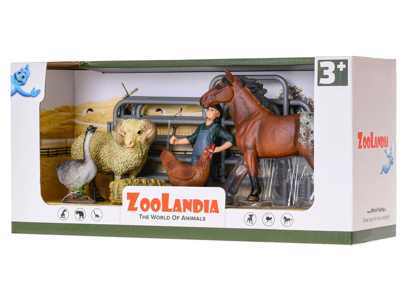 Bouw je eigen boerderij en beleef eindeloze verhalen met de Zoolandia-set. De figuren zijn zorgvuldig vervaardigd van hoogwaardig plastic en bootsen een realistische boerderijomgeving getrouw na. Kinderen kunnen alleen of samen met vriendjes spelen en zo zowel hun communicatieve vaardigheden als hun verbeeldingskracht ontwikkelen.