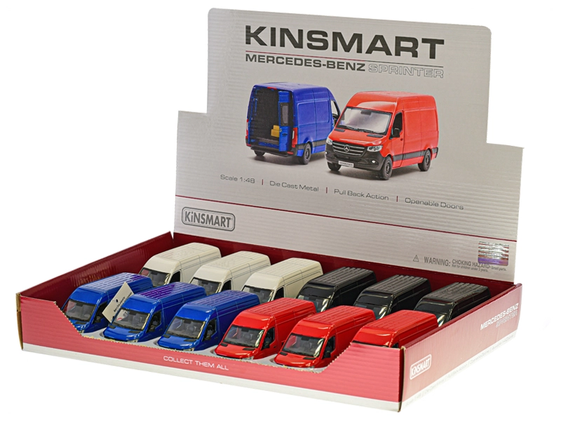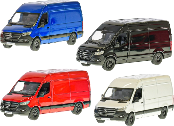 Gedetailleerd uitgevoerd metalen model van de bestelwagen Mercedes‑Benz Sprinter op schaal 1:48 dat zowel kinderen als verzamelaars zal aanspreken. Voorzien van te openen deuren, realistische proporties (12,5 × 5,5 × 5,5 cm) en een leuk pull‑back mechanisme voor voorwaartse rit. Verkrijgbaar in 4 kleuren, gemaakt van een duurzame combinatie van metaal en kunststof, geschikt vanaf 3 jaar.