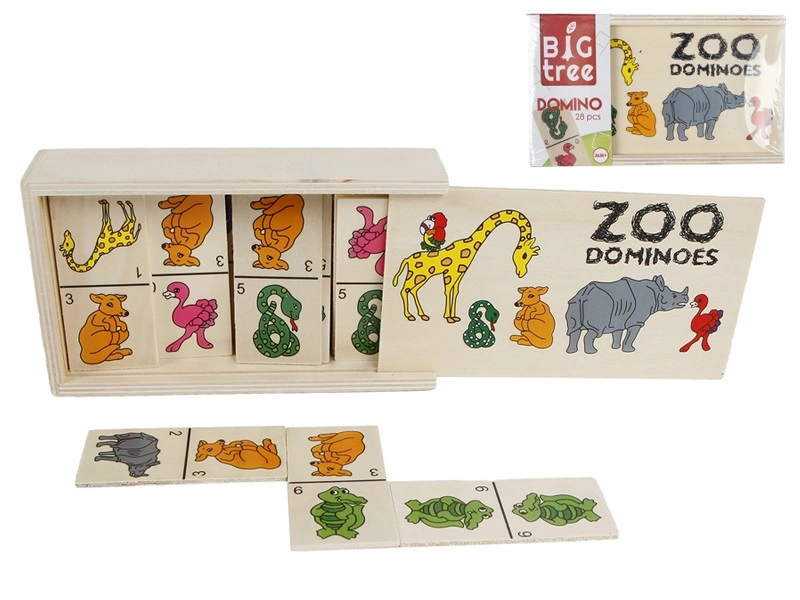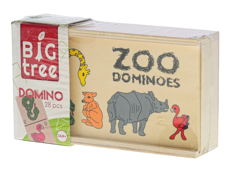 Ontdek de charme van een klassiek spel met een moderne twist: houten domino met dieren van Big Tree. Bevat 28 stevige houten steentjes met kleurrijke dierenillustraties die visuele waarneming, logisch denken en fijne motoriek stimuleren. Het praktische houten doosje maakt opbergen en meenemen gemakkelijk en zorgt voor een lange levensduur van het speelgoed.