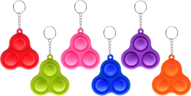 Verlicht stress altijd en overal met de praktische Plop up-hanger! Deze compacte antistress-gadget van 8,2 cm klik je eenvoudig aan je sleutels of rugzak en hij is verkrijgbaar in 6 opvallende kleuren – paars, rood, blauw, roze, groen en oranje.