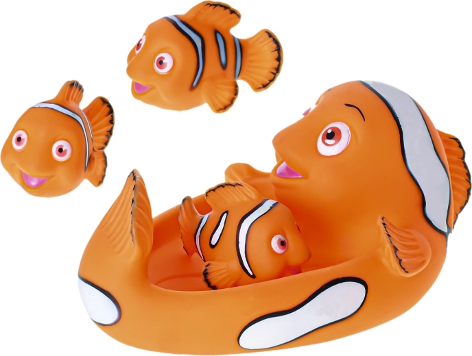 Een leuke badset met een clownvis-thema die al vanaf 4 maanden zelfs de allerkleinsten plezier bezorgt. Bevat 1 grote vis en 3 kleine visjes voor spelen in bad. Het speelgoed ondersteunt de fijne motoriek, stimuleert de zintuigen en biedt veilige waterpret. Veilige materialen, makkelijk vast te houden en dagelijks badplezier.