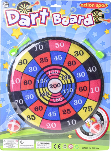 Een leuk en veilig dartbord met klittenband met een diameter van 28 cm is een geweldige keuze voor kinderen vanaf 3 jaar. De set bevat een dartbord, twee balletjes en twee pijltjes met klittenband voor eenvoudige en veilige bevestiging. Dankzij de lichte constructie en slijtvaste materialen is het spel geschikt voor zowel binnen als buiten en bevordert het de ontwikkeling van nauwkeurigheid, coördinatie en concentratie.