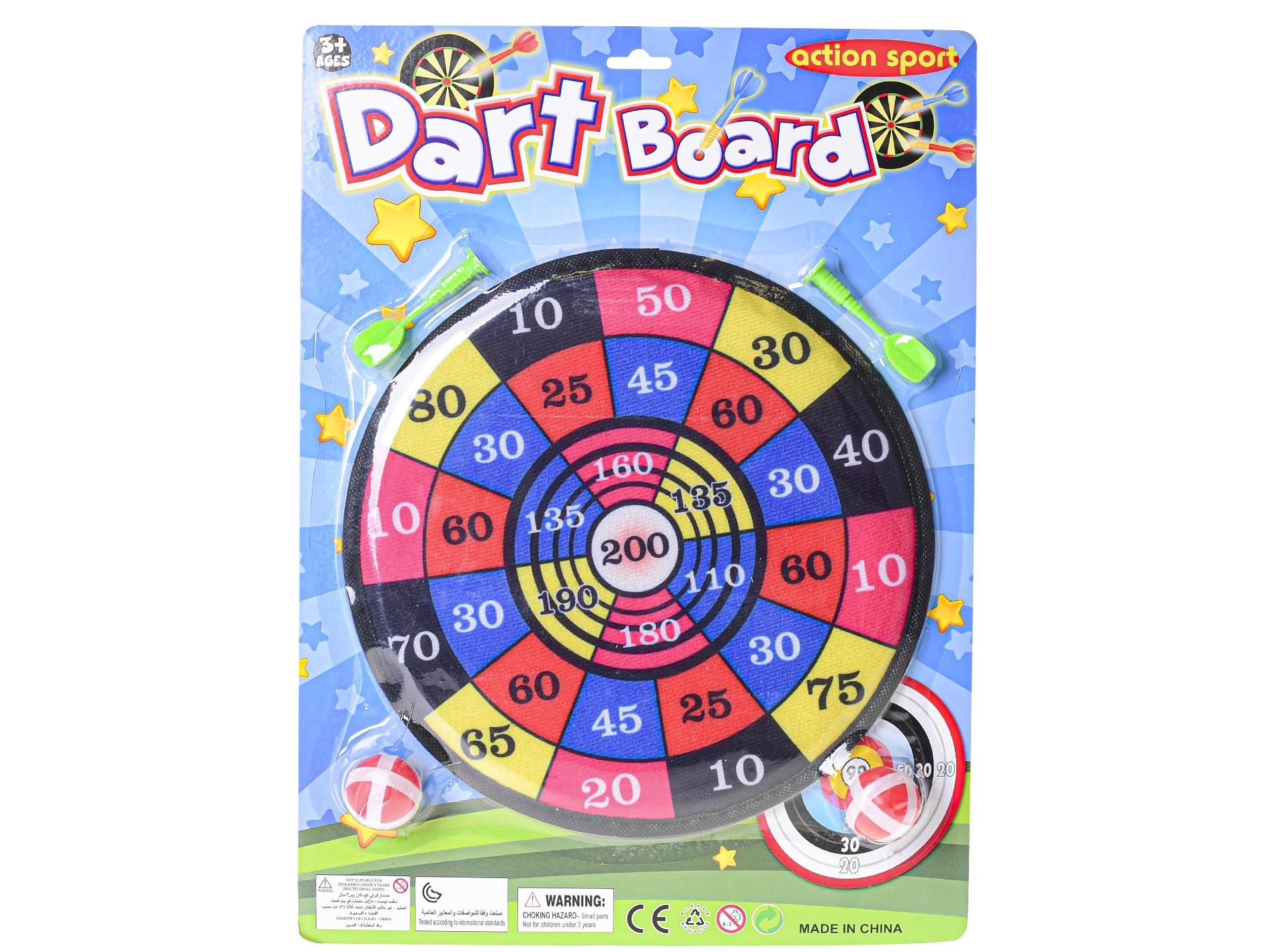 - Complete set: dartbord, 2 balletjes en 2 pijltjes met klittenband.