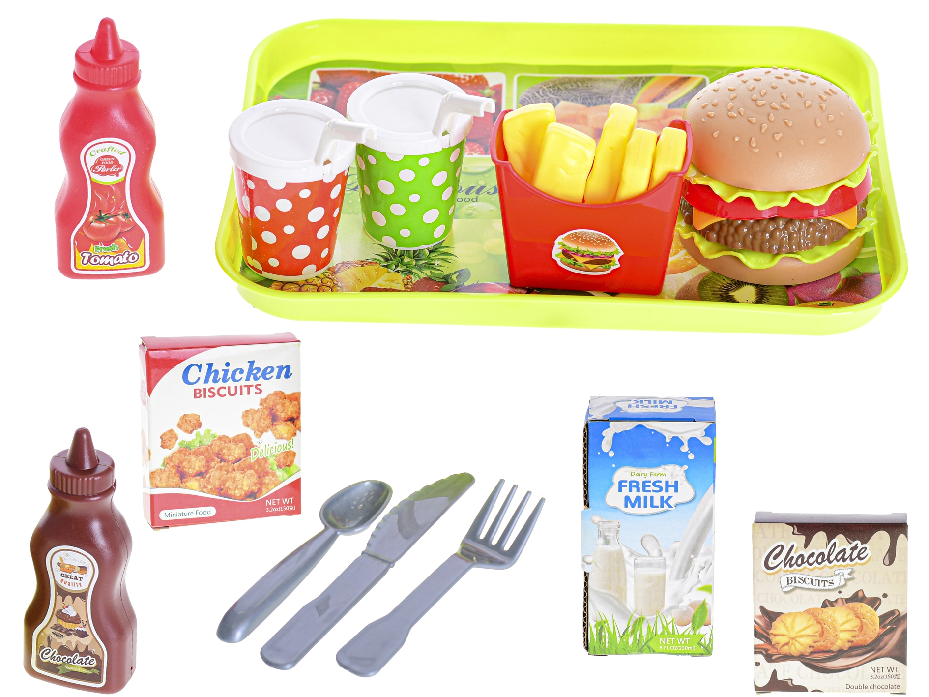 De fastfoodset biedt kinderen een authentieke ervaring van het bereiden en serveren van favoriete gerechten. Realistische vormen en kleuren nodigen uit tot creatief spel, terwijl de duurzame kunststof zorgt voor veiligheid en eenvoudig onderhoud.