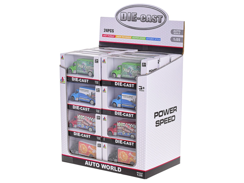Metalen vrachtwagentje 9,5 cm 1:55, vrijloop, 4 kleuren