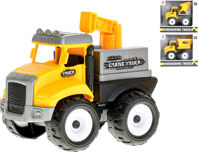 Leuk kunststof bouwvoertuig met frictie-aandrijving dat kinderen vanaf 3 jaar zal verrassen. Na opwinden rijdt het uit zichzelf, waardoor fijne motoriek wordt ontwikkeld en creatief spel wordt gestimuleerd. Er zijn drie varianten beschikbaar – betonmixer, kipper en kraan. De compacte afmetingen maken vasthouden en opbergen gemakkelijk, en de doosverpakking maakt er een geweldig cadeau van.
