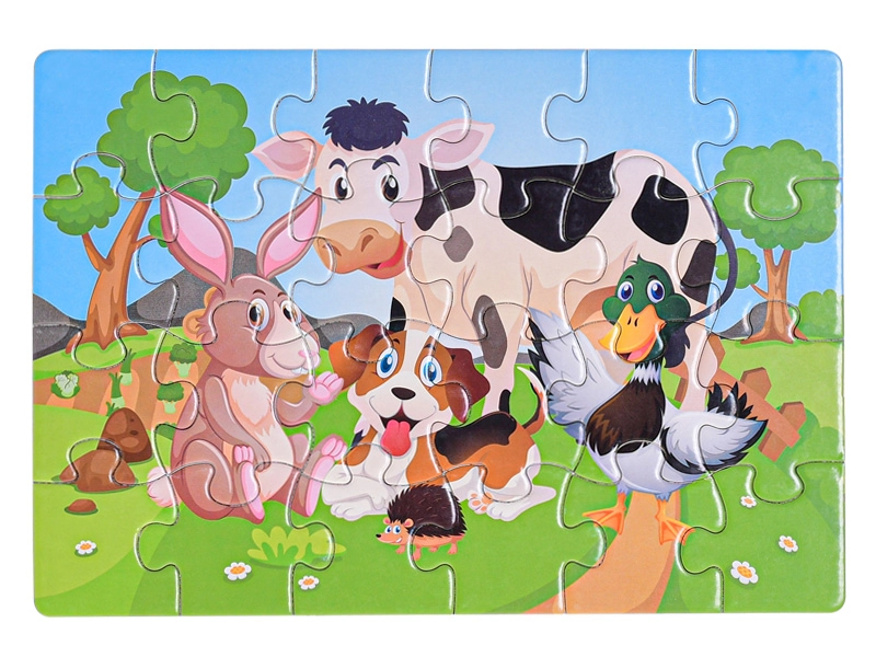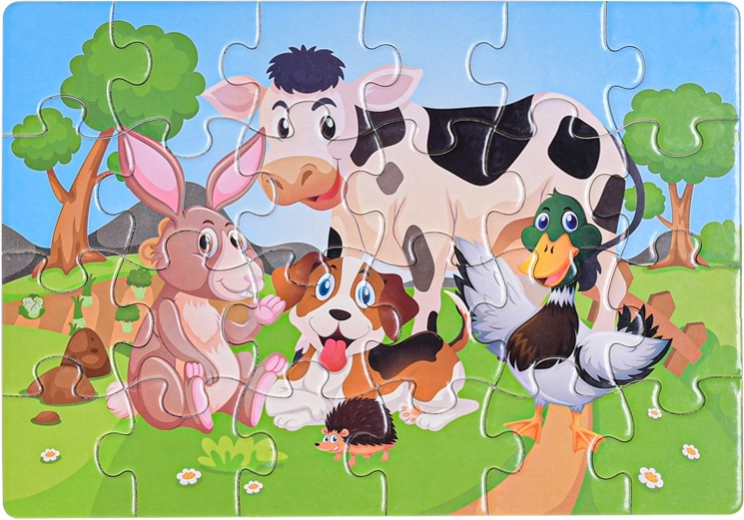 Deze speel-puzzel met dieren zal elk kind blij maken dat graag puzzelt en ontdekt. Dankzij de 24 stukjes is het leggen eenvoudig en motiverend, maar toch voldoende uitdagend voor de ontwikkeling van belangrijke vaardigheden. Geschikt als eerste “grotere” puzzel voor kleuters.